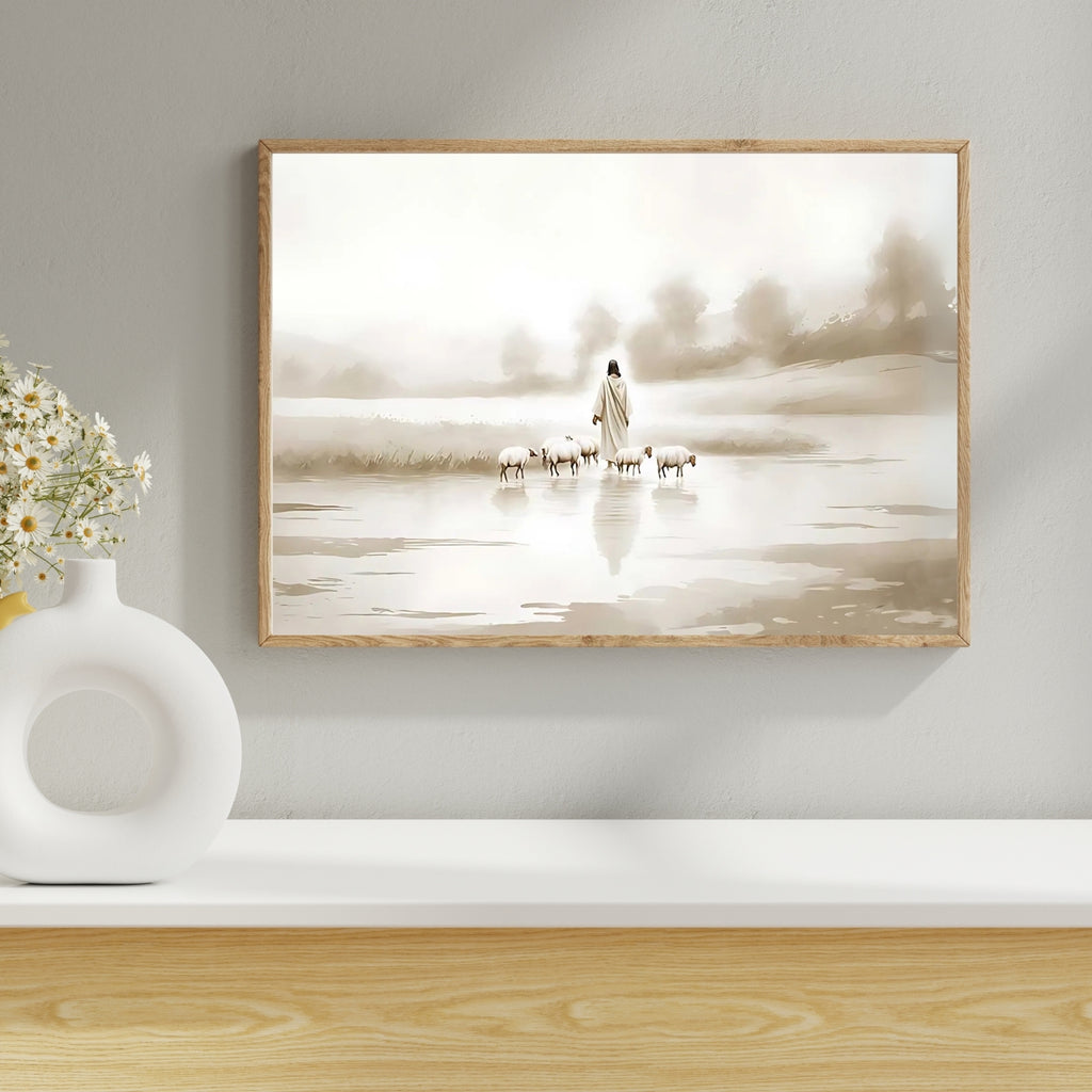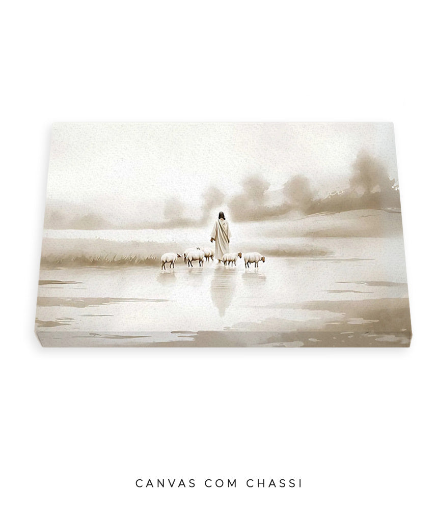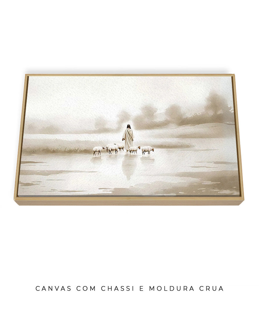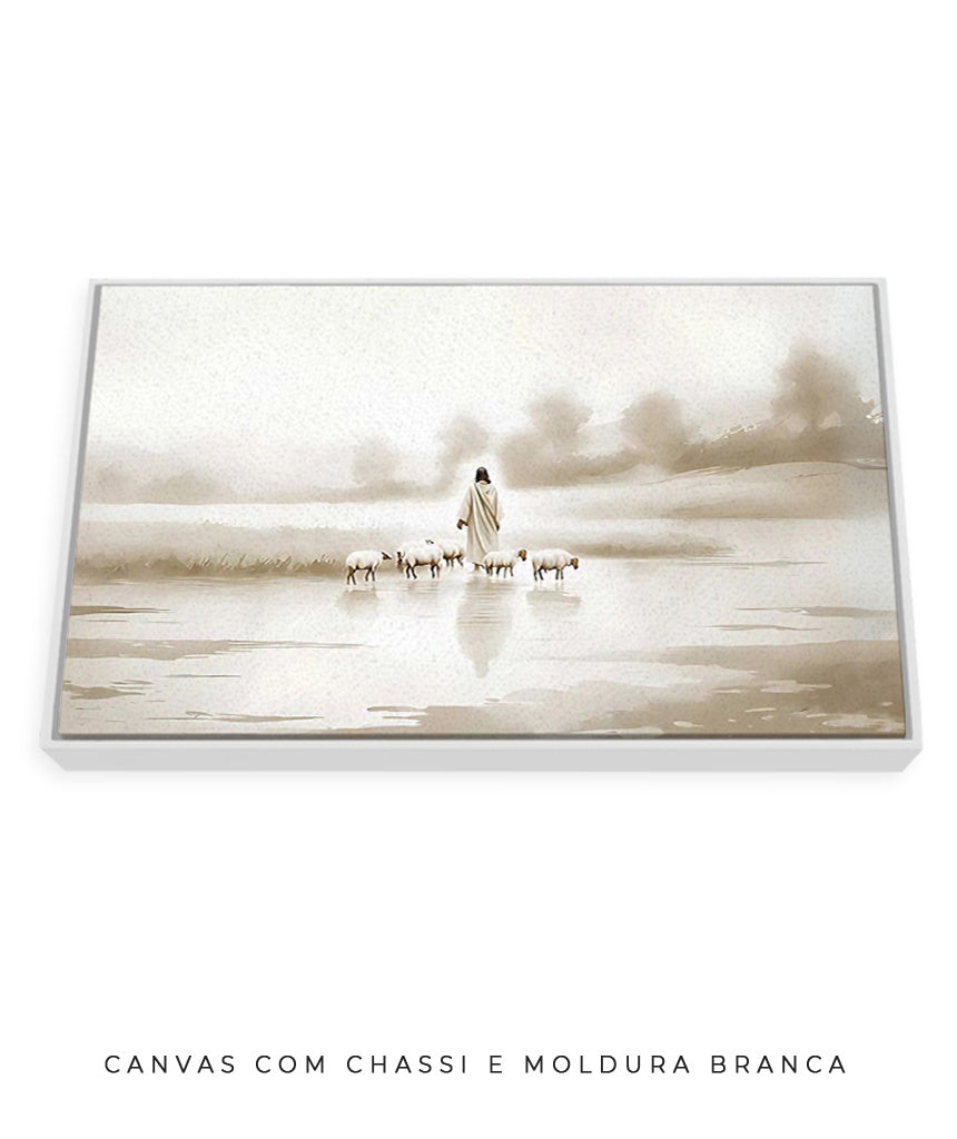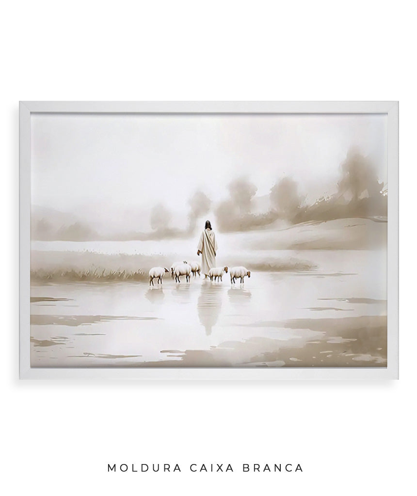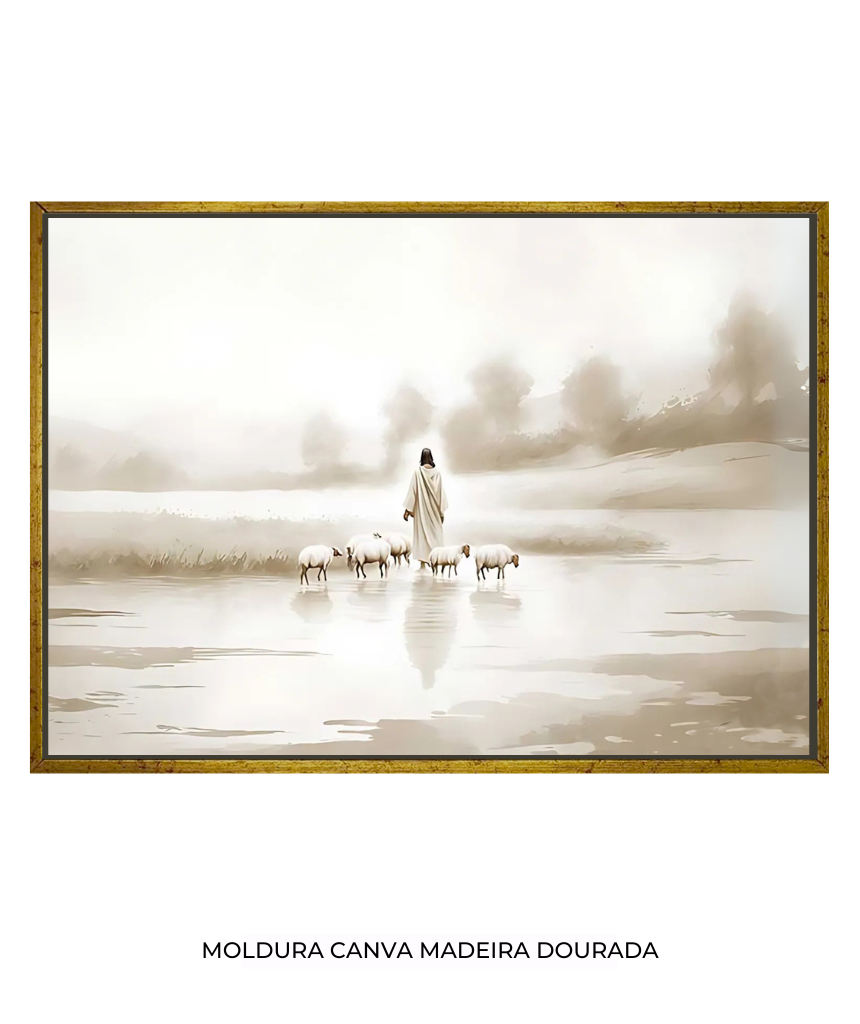Quadro Para Sala Cristão: Jesus, o Pastor de Luz | Obra Espiritual Decorativa - Arte 4K Decore PAZ 🐑🕊️