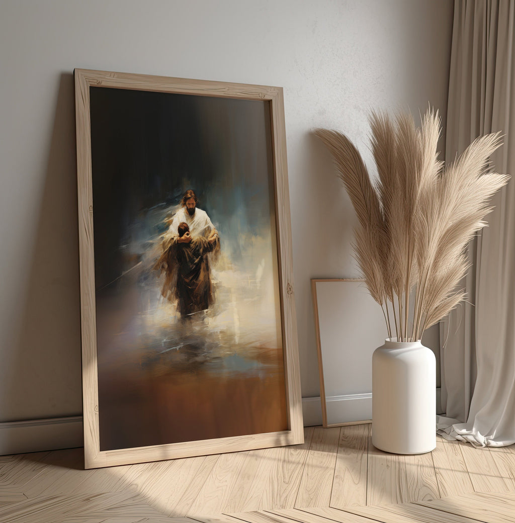 Emocionada ao receber o quadro: Jesus Sobre as águas